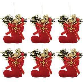 Transforme sua casa em um refúgio natalino com o Kit de 6 Botinhas Decoradas de Veludo Vermelho com Mini Rena e Corneta Dourada!