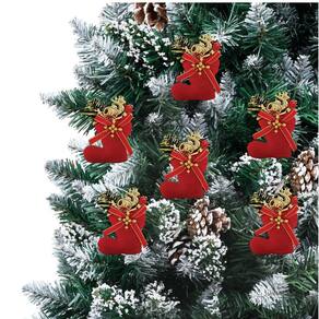 06 unidades Botinha Veludo Vermelha decorada Mini rena e corneta dourada 7cm - Magizi