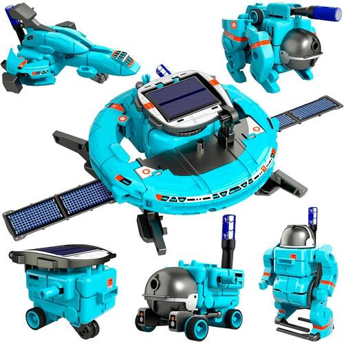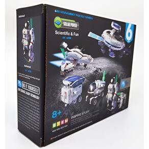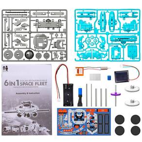 6-em-1 Kit de Robô Solar, incluindo uma Estação Espacial, Explorador Espacial, Space Rover, Space Shuttle, Astronauta e Space Dog. Comece com o seu modelo favorito e construa a sua própria frota espacial. Perfeito para crianças de 8 a 12 anos. Estes brinquedos de robô solar são alimentados por energia solar. O kit inclui um painel de energia solar, para que as crianças possam alimentar seus robôs com o sol é necessário. As crianças podem usá-lo dentro ou fora, independentemente do clima, e aprender sobre fontes de energia renováveis enquanto se divertem.