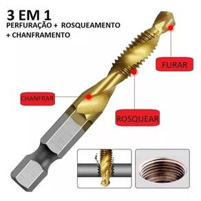 Aumente a eficiência e produtividade nas suas tarefas de perfuração, rosqueamento e chanframento com o Kit de 6 Brocas Lorben. Composto por brocas macho de aço rápido (HSS) espiral, este kit oferece uma solução prática e versátil para seus projetos.Ao contrário das brocas convencionais, essas Brocas são projetadas para abrir furos, fazer roscas e chanfrar ao mesmo tempo, em uma única passada. Isso significa mais agilidade e conveniência em seus projetos, pois você economiza tempo e esforço. Com tamanhos que vão de M3 a M10, você terá todas as opções necessárias para realizar diferentes tipos de furações e criação de roscas.Este Kit é uma excelente opção para montar uma caixa de ferramentas completa, seja para hobbies ou trabalhos profissionais.Ideais para perfuração em materiais como ferro, aço (até 2 mm), madeira e plástico, o uso dessas Brocas é extremamente fácil e preciso, sendo amplamente utilizadas em reparos automotivos e máquinas que requerem a criação de roscas.As Brocas Lorben são fabricadas com aço de alta velocidade e possuem revestimento em titânio, o que confere alta dureza e resistência à ferrugem. Para garantir a qualidade e a longevidade das suas brocas, lembre-se de refrigerá-las com óleo solúvel durante o processo de furação. Além disso, é importante ressaltar que elas devem ser utilizadas em uma máquina furadeira, preferencialmente uma furadeira de bancada, e sempre em um ângulo de 90° para evitar danos.Marca: LorbenMaterial: Aço de alta velocidade com revestimento em titânioQuantidade de peças: 6 brocasAplicação: Perfuração, chanframento e criação de roscaIndicação: Furadeira manual, furadeira de bancada (não incluídas)Dimensões do produto:Haste: diâmetro 6,35mm (1/4")M3 x passo 0.5 mm: 54 mm de comprimentoM4 x passo 0.7 mm: 54 mm de comprimentoM5 x passo 0.8 mm: 55 mm de comprimentoM6 x passo 1 mm: 57 mm de comprimentoM8 x passo 1.25 mm: 57 mm de comprimentoM10 x passo 1.5 mm: 57 mm de comprimentoTamanho da embalagem: 10x7x1,5 cmPeso da embalagem: 80 g Código do produto: GT6211Imagens ilustrativas. As tonalidades podem variar. Os produtos são medidos manualmente, podendo haver pequenas variações nas medidas.