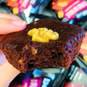 Com textura macia e úmida, este brownie de 40g une o sabor intenso do chocolate com a crocância das nozes, proporcionando uma experiência rica em contrastes. Cada mordida traz a cremosidade característica do brownie com o toque especial das nozes, tornando-o ideal para lanches rápidos, sobremesas individuais ou momentos de indulgência.