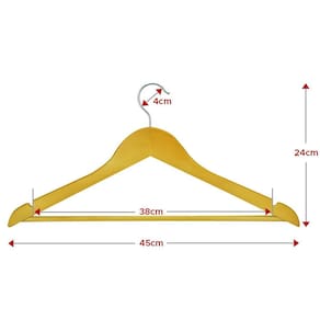 Principais destaques: - Kit com 6 cabides de madeira adulto camisa calça gancho metal - Produzido em madeira de alta qualidade - Gancho de metal giratório - Medidas externas: 45cm x 22cm Largura x Altura - Gancho para tubos de até 4cm