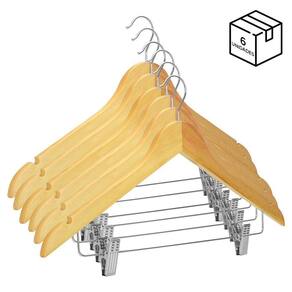Kit 6 Cabides de Madeira Com Presilhas e Gancho de Metal - Organize suas Roupas com Estilo e Praticidade!