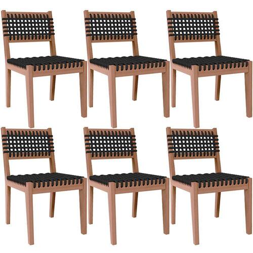 O Kit 6 Cadeiras Madeira Maciça Para Cozinha Corda Náutica Giardino G01 Castanheira Preto, da Lyam Decor, combina design moderno com durabilidade e funcionalidade. Com sua intricada tecelagem de corda náutica e estrutura maciça de madeira de eucalipto, essa cadeira de madeira é perfeita para uso interno e externo, seja na cozinha, varanda ou área de entretenimento. Seu design adiciona um toque de elegância a qualquer espaço, enquanto a construção robusta garante qualidade duradoura. Dê um upgrade na sua experiência gastronómica com a Cadeira de Madeira Maciça Giardino. Adicione agora mesmo ao seu carrinho e surpreenda-se!