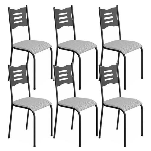 Kit 6 Cadeiras 542 Sala Jantar Cozinha Pés Aço Tubular - Cinza | Preto