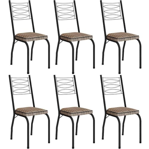 Kit 6 Cadeiras Aço Carbono Tubular Metálica Acabamento D-25 Luana Preto/rattan Seu sonho é ter uma cozinha/sala de estar com uma mesinha arrumada e confortável? Que tal começar a construir seu sonho com o Kit 6 Cadeiras para Cozinha Luana D-25 Clara de Aço? Com ele, você pode personalizar sua mesa de jantar e ter a de estar usando um produto de alta qualidade! Aproveite esse e muitos outros produtos incríveis na Casa Chick! Dimensões da Cadeira Luana: - Altura: 92 cm - Largura: 35 cm - Profundidade: 42 cm