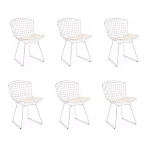 AS IMAGENS SÃO MERAMENTE ILUSTRATIVAS E PODEM SOFRER VARIAÇÕES DE COR E PEQUENOS DETALHES DE ACORDO COM O SEU MONITOR, ILUMINAÇÃO DO AMBIENTE E ATÉ MESMO A SUA PERCEPÇÃO VISUAL.Kit 6 Cadeiras Bertoia Branca com Assento Branco