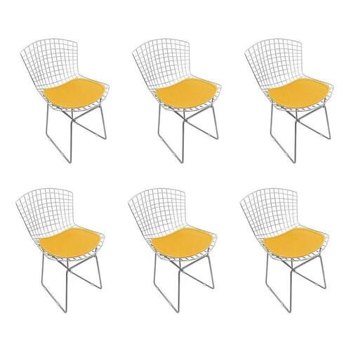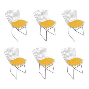 AS IMAGENS SÃO MERAMENTE ILUSTRATIVAS E PODEM SOFRER VARIAÇÕES DE COR E PEQUENOS DETALHES DE ACORDO COM O SEU MONITOR, ILUMINAÇÃO DO AMBIENTE E ATÉ MESMO A SUA PERCEPÇÃO VISUAL.Kit 6 Cadeiras Bertoia Cromada com Assento SintÃtico Amarelo