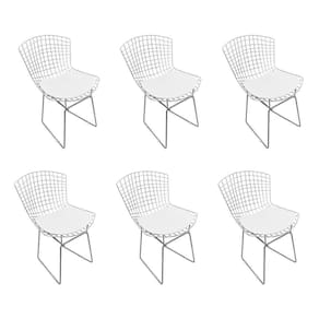 AS IMAGENS SÃO MERAMENTE ILUSTRATIVAS E PODEM SOFRER VARIAÇÕES DE COR E PEQUENOS DETALHES DE ACORDO COM O SEU MONITOR, ILUMINAÇÃO DO AMBIENTE E ATÉ MESMO A SUA PERCEPÇÃO VISUAL.Kit 6 Cadeiras Bertoia Cromada com Assento SintÃtico Branco