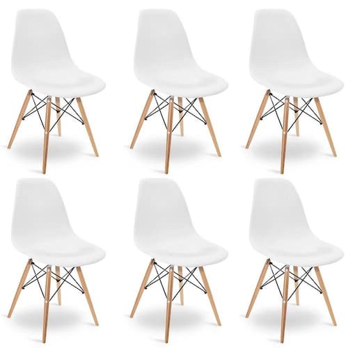 Kit 6 Cadeiras Charles Eames Eiffel Wood Design Branca