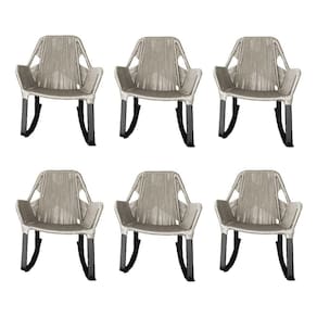 IMAGENS MERAMENTE ILUSTRATIVAS REALIZADO EDIÇÃO, PODENDO HAVER UMA PEQUENA VARIAÇÃO DE COR DEPENDENDO DE CADA TELA OU MONITOR.Kit 6 Cadeiras de BalanÃo Athenas Corda NÃutica Base em AlumÃnio Preto/areia