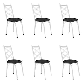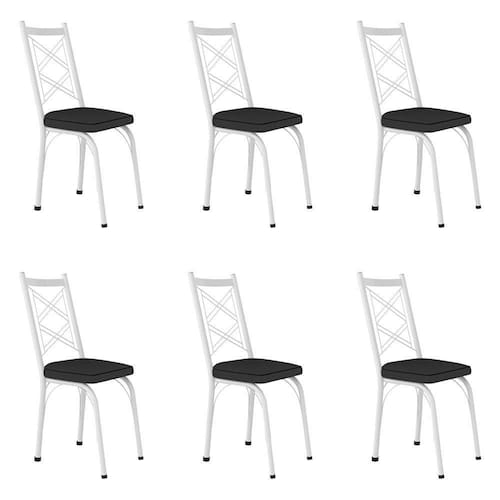 Kit 6 Cadeiras De Cozinha Delaware Corino Preto Pés De Ferro Branco - Pallazio