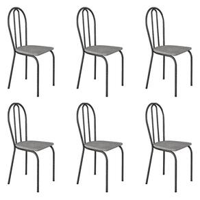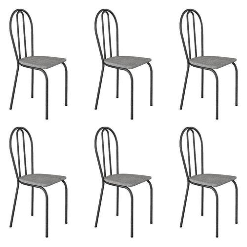 Kit 6 Cadeiras De Cozinha Texas Estampado Grafiato Pés De Ferro Cromo Preto - Pallazio