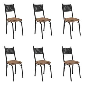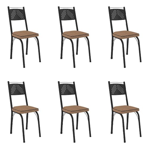 Kit 6 Cadeiras de Cozinha Virginia Estampado Rattan Bege Pés de Ferro Preto - Pallazio