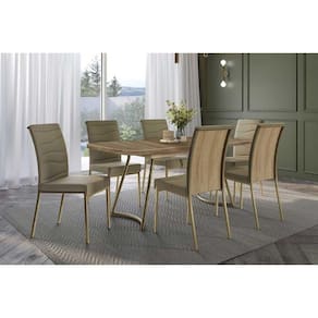 Cadeira Sala de Jantar Wave 1754 Kit 6 Un Dourado/Linho Bamboo/Courano Bamboo/Noce - Carraro