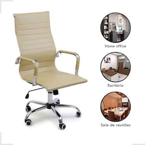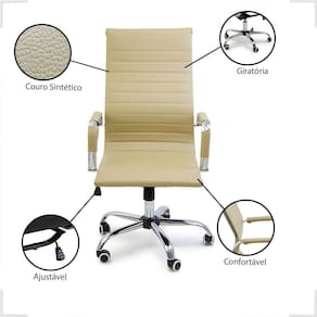 Descubra a elegância da Cadeira de Escritório Giratória Esteirinha Alta. Revestida em couro sintético, possui encosto alto e braços fixos em metal, perfeita para elevar seu home office ou escritório com estilo e ergonomia.