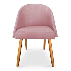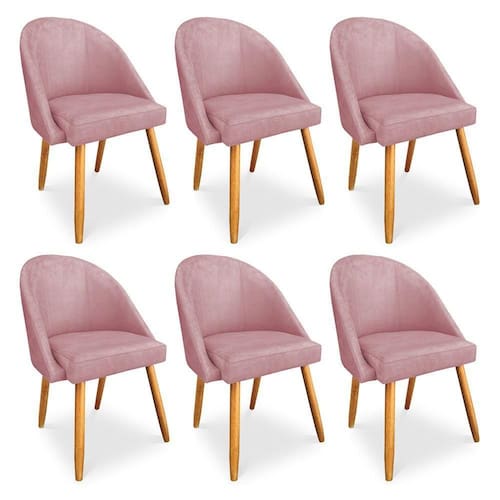 Kit 6 Cadeiras De Jantar Bela Veludo Rosê Pés Palito Castanho Pallazio