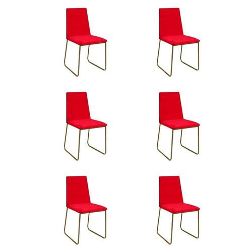 Kit 6 Cadeiras De Jantar Cozinha Industrial Lexa Veludo - élpis Móveis Vermelho Dourada