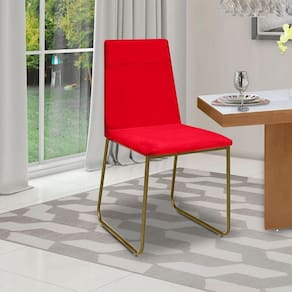 Kit 6 Cadeiras De Jantar Cozinha Industrial Lexa Veludo Élpis Móveis Vermelho Dourada