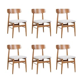 AS IMAGENS SÃO MERAMENTE ILUSTRATIVAS E PODEM SOFRER VARIAÇÕES DE COR E PEQUENOS DETALHES DE ACORDO COM O SEU MONITOR, ILUMINAÇÃO DO AMBIENTE E ATÉ MESMO A SUA PERCEPÇÃO 6 Cadeiras de Jantar Delta Estrutura AÃo Carbono Laminado Natural com Estofado Linho Cru