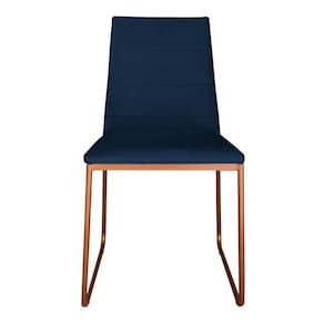 Kit 6 Cadeiras de Jantar Estofada Lille Base Bronze Veludo Azul Marinho - Montanaris Decor