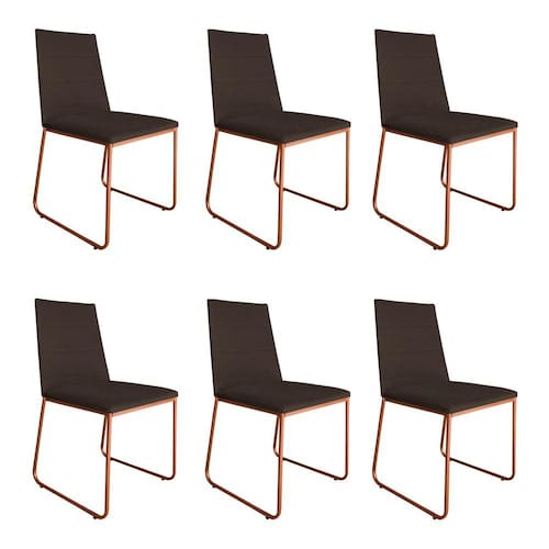 Kit 6 Cadeiras de Jantar Estofada Lille Base Bronze Veludo Marrom chegou essa incrível novidade para você, que deseja inovar e decorar o seu espaço com muito Estilo. A Cadeira Lille possui uma matéria-prima de ótima qualidade, garantindo conforto e durabilidade do produto. Possui variações de cores tanto na base e no assento, oferecendo várias opções de escolha para sua decoração.
