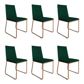 Kit 6 Cadeiras de Jantar Estofada Lille Base Bronze Veludo Verde chegou essa incrível novidade para você, que deseja inovar e decorar o seu espaço com muito Estilo. A Cadeira Lille possui uma matéria-prima de ótima qualidade, garantindo conforto e durabilidade do produto. Possui variações de cores tanto na base e no assento, oferecendo várias opções de escolha para sua decoração.