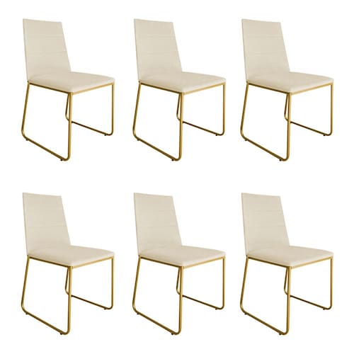 Kit 6 Cadeiras de Jantar Estofada Lille Base Gold Veludo Bege - Montanaris Decor