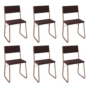 IMAGENS MERAMENTE ILUSTRATIVAS REALIZADO EDIÇÃO, PODENDO HAVER UMA PEQUENA VARIAÇÃO DE COR DEPENDENDO DE CADA TELA OU MONITOR.Kit 6 Cadeiras De Jantar Estofadas Angra - Cobre E Marrom