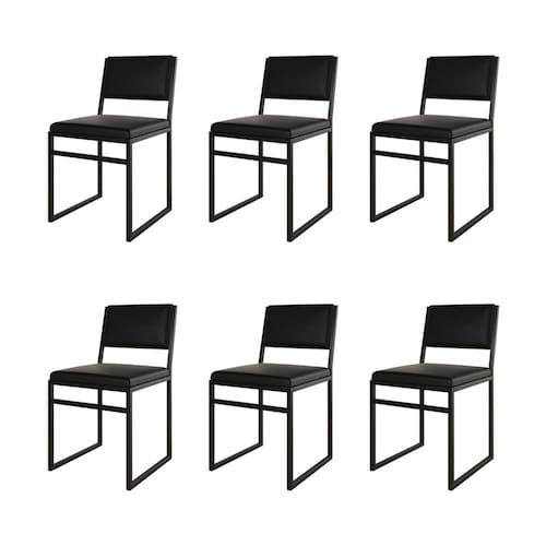 Kit 6 Cadeiras De Jantar Industrial Isa Assento Corino Preto