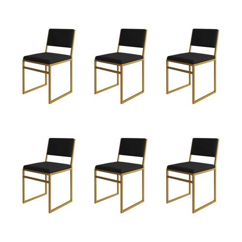 Kit 6 Cadeiras De Jantar Industrial Isa Assento Veludo Preto Base Dourado