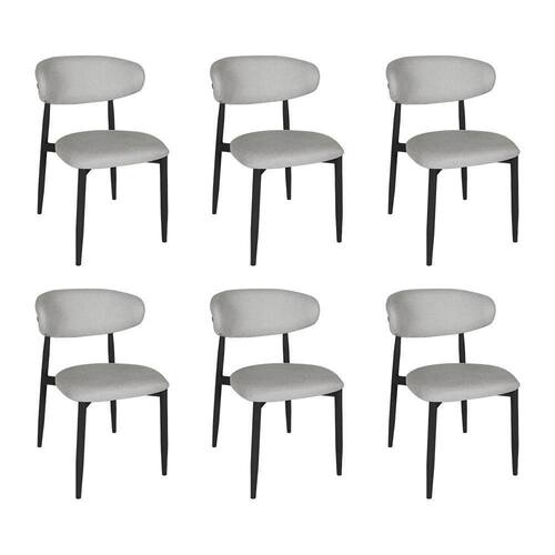AS IMAGENS SÃO MERAMENTE ILUSTRATIVAS E PODEM SOFRER VARIAÇÕES DE COR E PEQUENOS DETALHES DE ACORDO COM O SEU MONITOR, ILUMINAÇÃO DO AMBIENTE E ATÉ MESMO A SUA PERCEPÇÃO 6 Cadeiras de Jantar Lucy Estrutura AÃo Carbono Laminado Preto com Estofado Linho Cinza