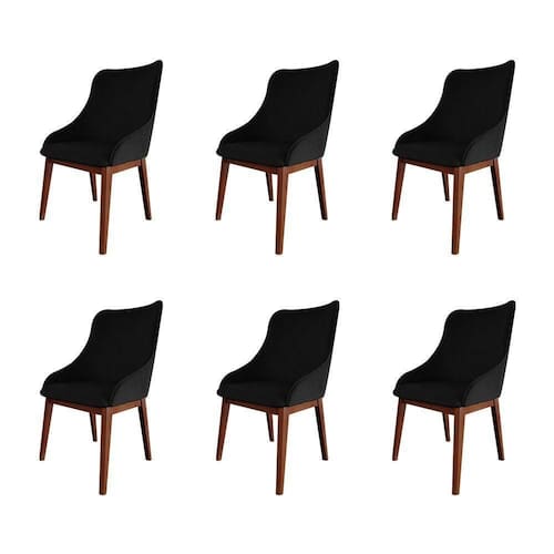 Kit 6 Cadeiras De Jantar Luxo Estofada Elisa Anatômica Couro Pu Preto Base Madeira Maciça Imbuia A Cadeira Elisa possui formato anatômico e vai deixar sua sala de jantar muito mais bonita e sofisticada. Mantendo todo conforto que o móvel precisa ainda conta com enorme elegância. Tipo: Cadeira Modelo: Elisa Cor: Preto Cor Base: Imbuia Tecido: Tecido Sintético Medidas: Altura: 90cm Largura: 55cm Comprimento: 58cm ATENÇÃO IMAGENS MERAMENTE ILUSTRATIVAS REALIZADO EDIÇÃO, PODENDO HAVER UMA PEQUENA VARIAÇÃO DE COR DEPENDENDO DE CADA TELA OU MONITOR.