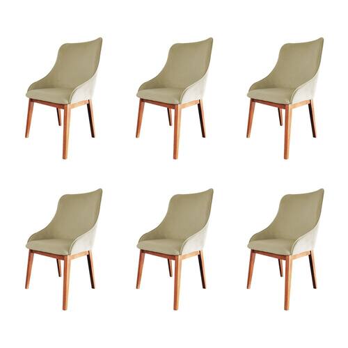 Kit 6 Cadeiras De Jantar Luxo Estofada Elisa Anatômica Veludo Bege Base Madeira Maciça