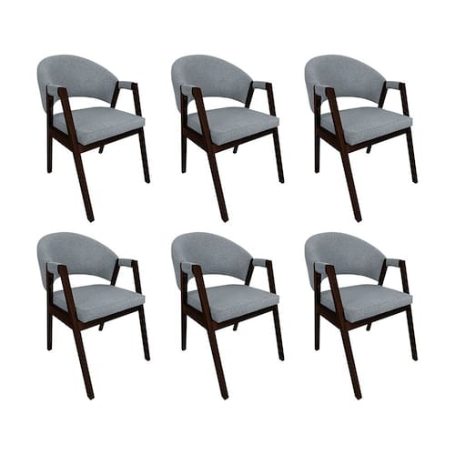 Kit 6 Cadeiras de Jantar Madeira Maciça Castanho Premium Helen Linho Cinza