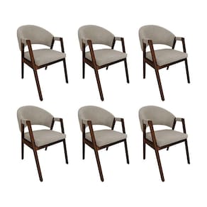 AS IMAGENS SÃO MERAMENTE ILUSTRATIVAS E PODEM SOFRER VARIAÇÕES DE COR E PEQUENOS DETALHES DE ACORDO COM O SEU MONITOR, ILUMINAÇÃO DO AMBIENTE E ATÉ MESMO A SUA PERCEPÇÃO VISUAL.Kit 6 Cadeiras de Jantar Madeira MaciÃa Mel Premium Helen Linho Bege