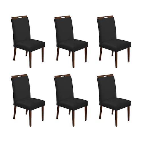 AS IMAGENS SÃO MERAMENTE ILUSTRATIVAS E PODEM SOFRER VARIAÇÕES DE COR E PEQUENOS DETALHES DE ACORDO COM O SEU MONITOR, ILUMINAÇÃO DO AMBIENTE E ATÉ MESMO A SUA PERCEPÇÃO VISUAL.Kit 6 Cadeiras de Jantar Madeira MaciÃa Mel Premium HeloÃsa Veludo Preto