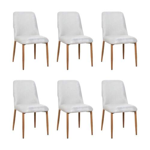 AS IMAGENS SÃO MERAMENTE ILUSTRATIVAS E PODEM SOFRER VARIAÇÕES DE COR E PEQUENOS DETALHES DE ACORDO COM O SEU MONITOR, ILUMINAÇÃO DO AMBIENTE E ATÉ MESMO A SUA PERCEPÇÃO 6 Cadeiras de Jantar Montana Estrutura AÃo Carbono Laminado Natural com Estofado Linho Cru