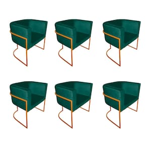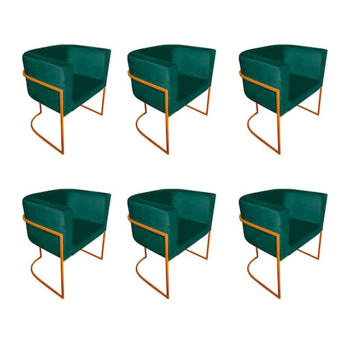 Kit 6 Cadeiras de Jantar Premium Base de Ferro Cobre Veludo Verde