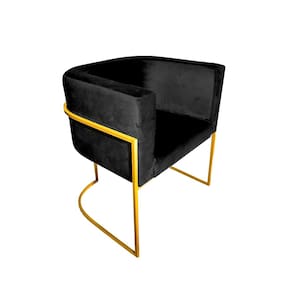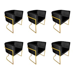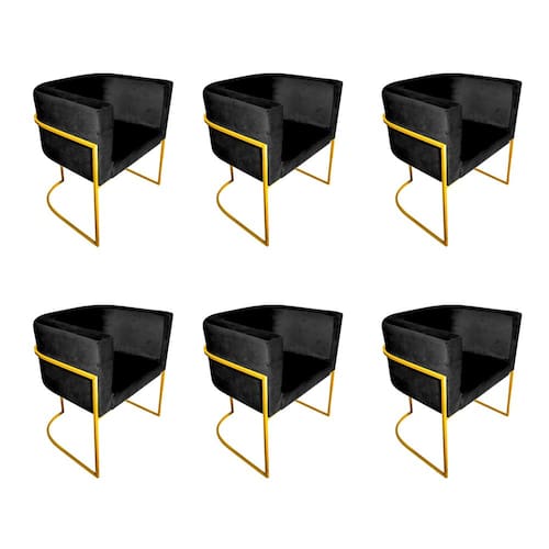 Kit 6 Cadeiras de Jantar Premium Base de Ferro Dourada Veludo Preto - Preto