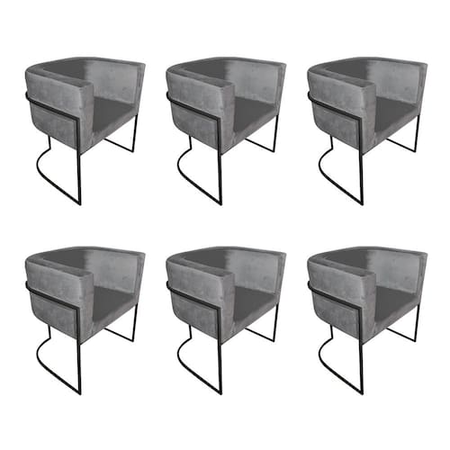 Kit 6 Cadeiras de Jantar Premium Base de Ferro Preta Veludo Cinza