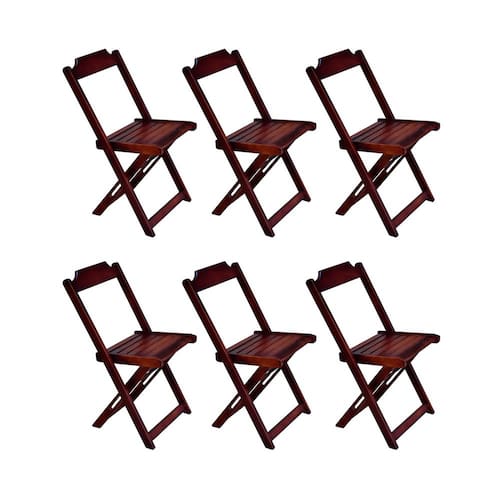 Kit 6 Cadeiras De Madeira Dobravel Imbuia é ideal para bares, restaurantes, estabelecimentos, áreas de lazer e tambem para sua casa. Feito em madeira maciça, tornando resistentes e duráveis. Seu design permite que seja encaixado em qualquer ambiente, trazendo um toque a mais para seu estabelecimento. Além de sua durabilidade, o que lhe trará conforto para servir seus clientes. Por ser dobrável torna-se mais fácil guardar, manusear e limpar o produto. Atenção: EVITE USAR PRODUTOS ABRASIVOS E QUíMICOS PARA LIMPEZA DO PRODUTO, aconselha-se o uso de pano umedecido para melhor conservação; mantenha o produto fora de chuva e sol constantes. CADEIRA Cor: Imbuia Modelo: Dobravel Dimensões: Altura 80 | Largura 45 | Profundidade 42