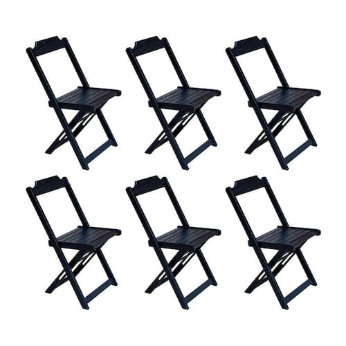 Kit 6 Cadeiras De Madeira Dobravel Preto - Cor: Preto