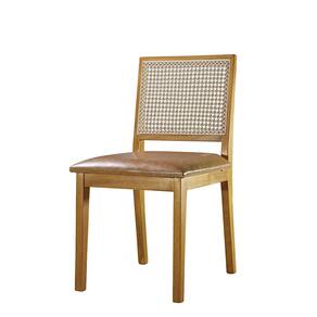 Kit 6 Cadeiras Atenas em Madeira Macica, Courino Caramelo e Encosto Rattan Natural.