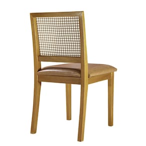 Informacoes Tecnicas Cadeira Material da Estrutura: Madeira Macica de Tauari Tratado, 100 Imunizado e Seco em Estufa. Assento: Espuma D26 Soft Real. Encosto: Telinha de Rattan Natural. Assento/Pes: Reforcado. Acabamento: Resinado e Envernizado. Tecido Cadeira: Courino. Cor do Tecido: Caramelo. Embalagem Cadeiras: Caixa de Papelao -Duas cadeiras montadas por caixa-.