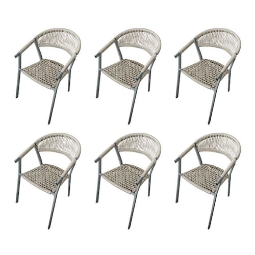 Kit 6 Cadeiras Decorativa Joana em Corda Náutica e Base em Alumínio Cinza/ Areia - Bege