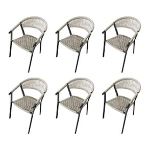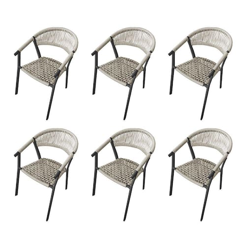 Kit 6 Cadeiras Decorativa Joana em Corda Náutica e Base em Alumínio Preta/ Areia - Bege