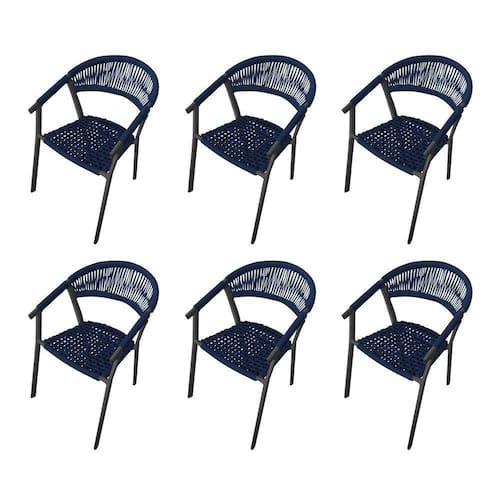 Kit 6 Cadeiras Decorativa Joana Em Corda Náutica E Base Em Alumínio Preta/ Azul Marinho - Cor: Azul