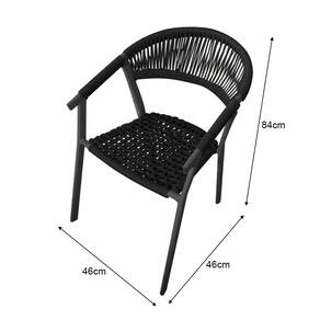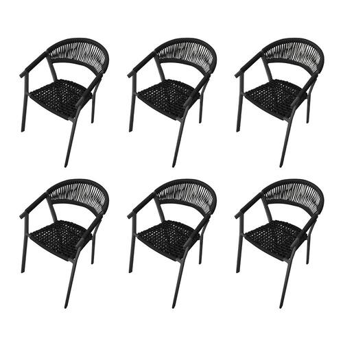 Kit 6 Cadeiras Decorativa Joana em Corda Náutica e Base em Alumínio Preta/preta - Preto