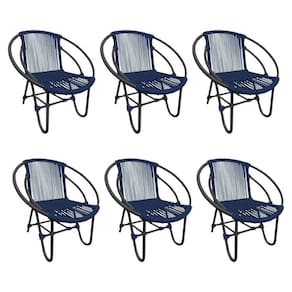 Kit 6 Cadeiras Decorativa Julia Em Corda Náutica E Base Em Alumínio Preta/ Azul Marinho - Cor: Azul